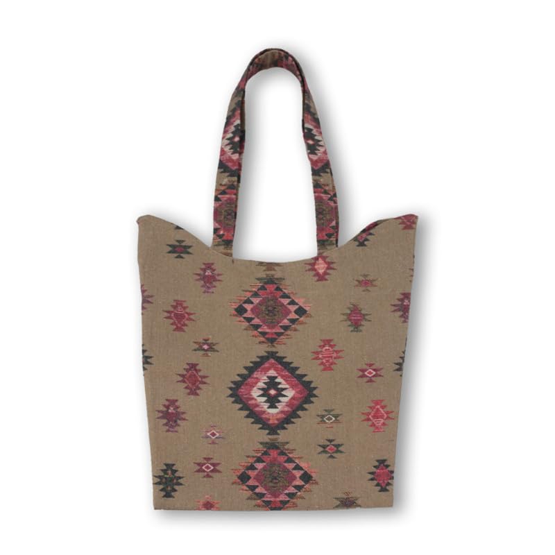 GHARIBO BAGS - شنطة يد كبيرة توت كاجوال مطبوعة من الكتان للنساء من غاريبو باجز W230014A مقاس 33 × 39 لون بني