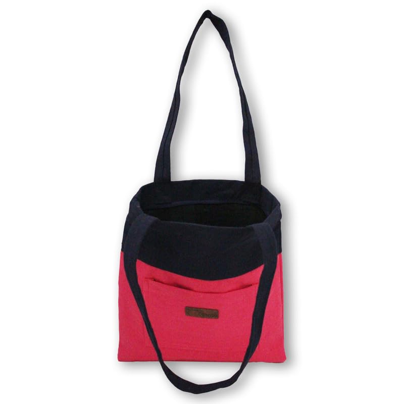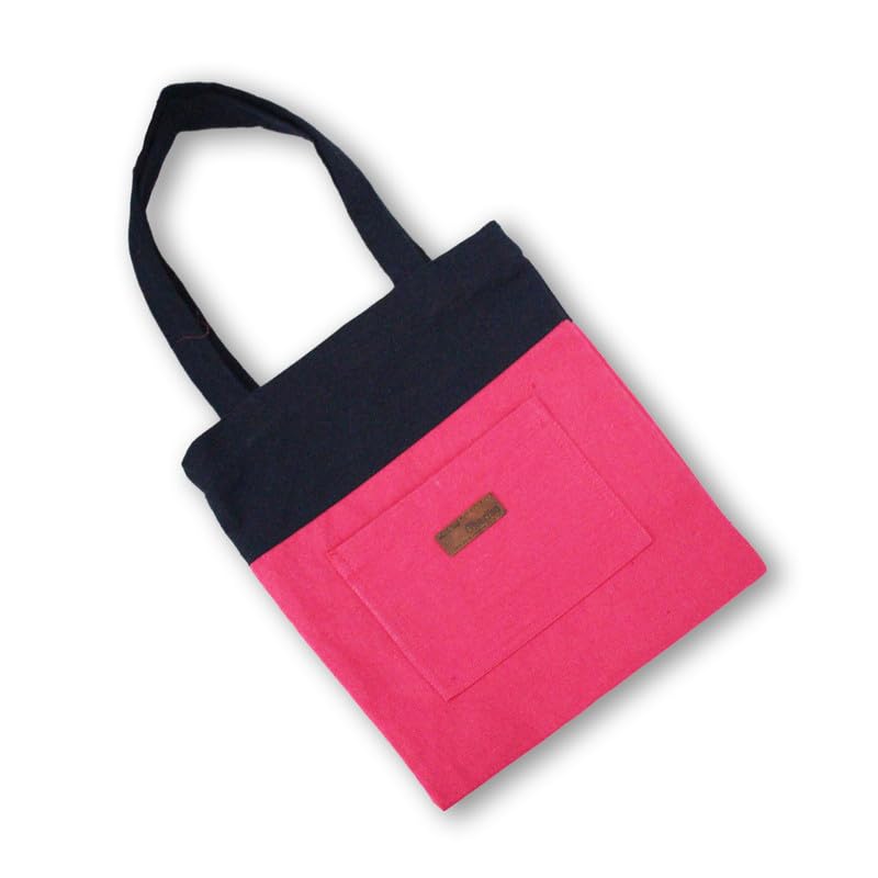 GHARIBO BAGS - شنطة كبيرة توت من الكتان للنساء من غاريبو باجز بالوان سحب وجيب خارجي R230134E مقاس 34 × 40 سم، لون بينك، زهري