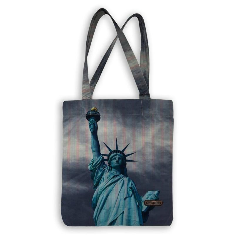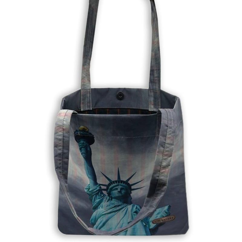 GHARIBO BAGS - شنطة يد كبيرة توت من الساتان بطبعة تمثال الحرية للنساء من غاريبو باجز R230067 مقاس 33 × 38 سم، متعددة الالوان