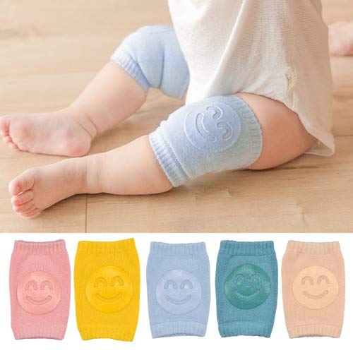 volumoon - 5 ازواج من وسادات الركبة للزحف للاطفال من غزال، واقيات ركبة مضادة للانزلاق للاطفال من الجنسين، جوارب مضادة للانزلاق، واقيات ركبة مرنة قابلة للتعديل، للاطفال الصغار