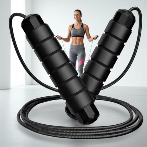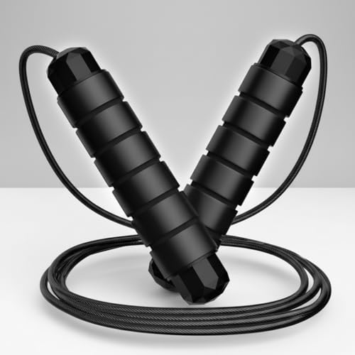 GHAZAL, - حبل قفز بوميبو قابل للتعديل من غزال - دوران سريع بمحمل كروي، تصميم خالٍ من التشابك، للنساء والرجال والأطفال في المنزل وصالة الألعاب الرياضية والمدرسة وتمارين الكارديو - أسود