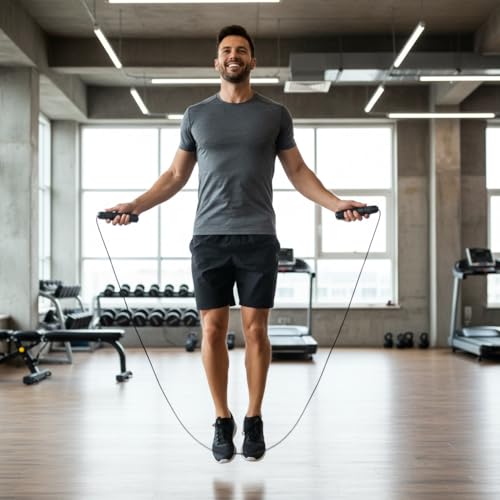 - مقابض إسفنجية مريحة مع سطح مقاوم للعرق وغير قابل للانزلاق؛ تقلل من إجهاد اليد وتضمن قبضة آمنة أثناء القفز الطويل