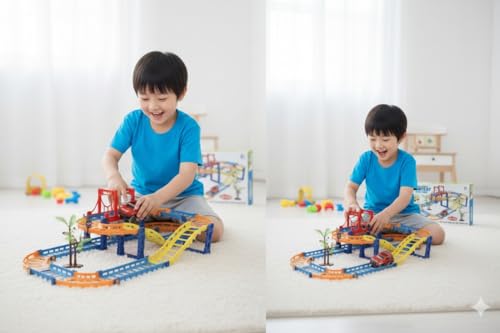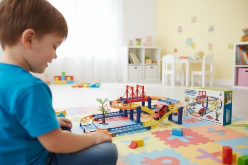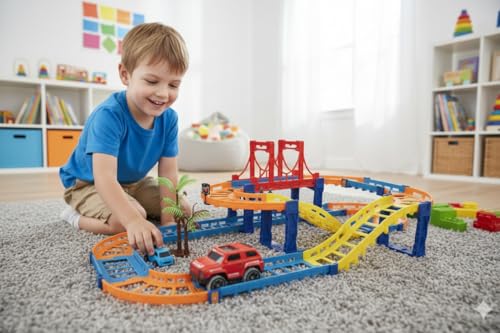 - مجموعة مضمار السباق: مضمار سباق بلاستيكي ملون مع قطع متعددة للترفيه اللامتناهي وتكوينات اللعب الإبداعية.