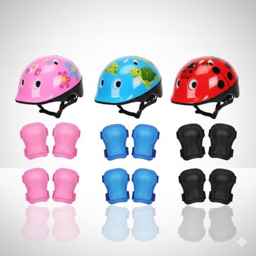 GHAZAL - معدات السلامة للجنسين من الناشئين، بتصميم "الدعسوقة"، أحمر، لسن من ٣ إلى ١٢ سنة، مقاس قابل للتعديل ومقاومة عالية للصدمات، طراز "ال ايه"، مصنوع من بلاستيك ايه بي اس، ومخصص لركوب الدراجات والتزلج