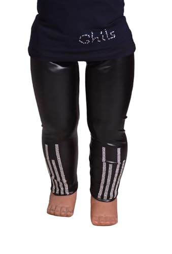Ghils - استرتش اطفال ليكرا بناتي جلد ديسكو من Ghils بنطلون اسود بشريط كشمير الجمب