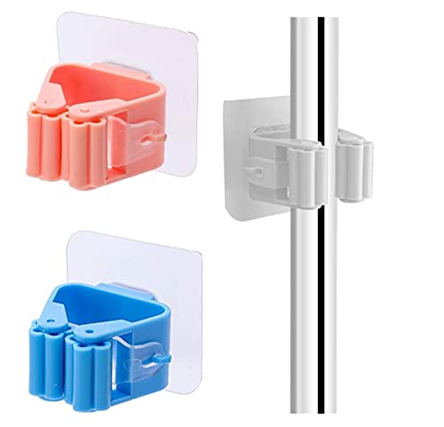 Spaceshoop - حامل لمساحة الموب، ذاتي اللصق دون الحاجة للمثقب للتثبيت، وقابل لاعادة الاستخدام ومضاد للانزلاق، يثبت على الحائط لتنظيم المنزل والمطبخ وخزانة الملابس من جايم - متعدد الالوان (2)، بلاستيك