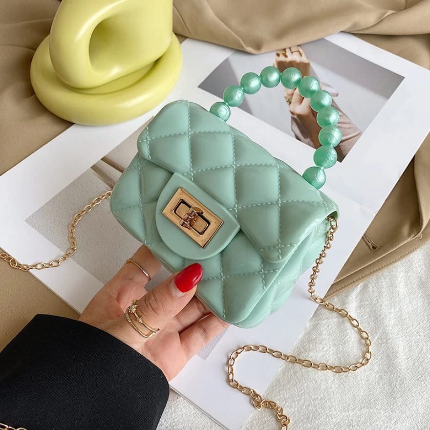 Ghime - شنطة يد كروس عصرية أنيقة كاجوال صغيرة مع حزام كتف سلسلة من الراتنج والسيليكون للبنات الصغيرات من جيم، أخضر
