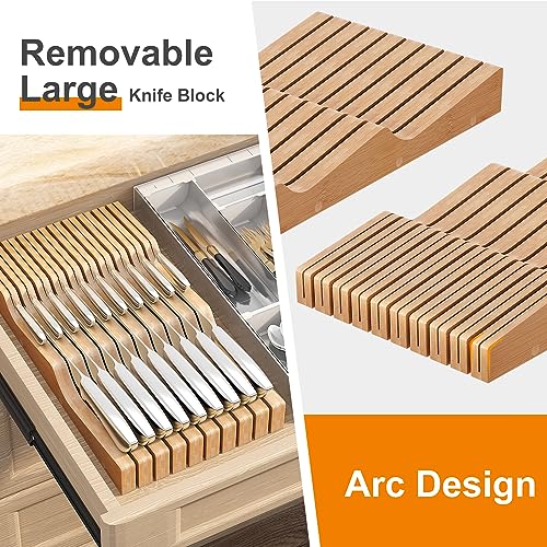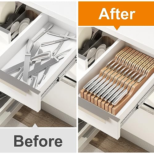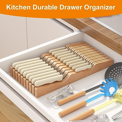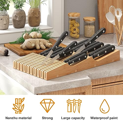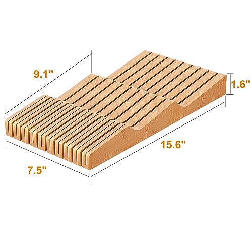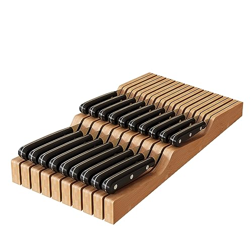 GHWIE - جي اتش دبليو آي اي حامل سكاكين من الخيزران، منظم درج السكاكين داخل الدرج، كتلة منظم للسكاكين يحمل ما يصل إلى 19 سكين (غير متضمنة)