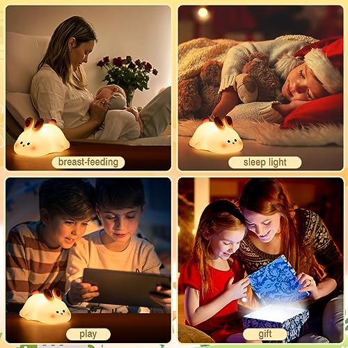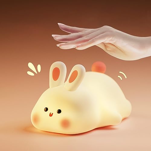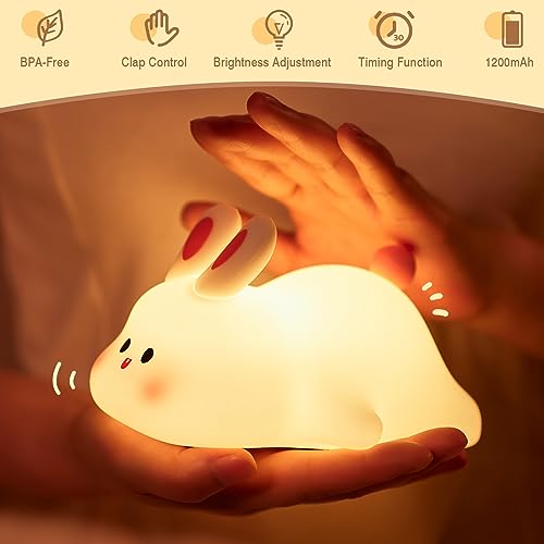 GIACOMO - مصباح ليلي للأطفال بتصميم أصلي، مزيل الضوء من السيليكون على شكل أرنب لطيف، مزود بإضاءة ليد قابلة لإعادة الشحن مع مؤقت. مصباح ليلي مثالي بجانب السرير، هدية مثالية للأطفال (شكل الأرنب) من جياكومو