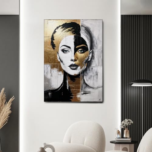 Giallobus - لوحة - 21 - امرأة ذهبية - إطار قماش قياسي - 70 سم × 1 متر - جاهزة للتعليق - لوحات عصرية للمنزل من جيالوبوس