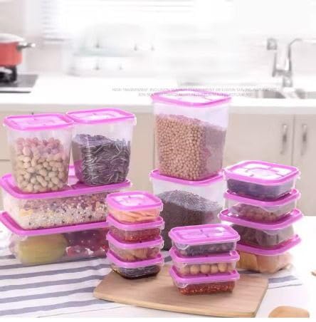 - طقم ثلاجة يتكون من 17 قطعة مصنوعة من بلاستيك بيور رقم 5 pp عالي الجودة والمتانة.