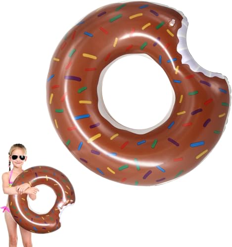 Generic - عوامة حمام السباحة العملاقة على شكل دونات بلون الشوكولاتة، عوامة سباحة قابلة للنفخ بتصميم سبرينكلز، متعددة الالوان