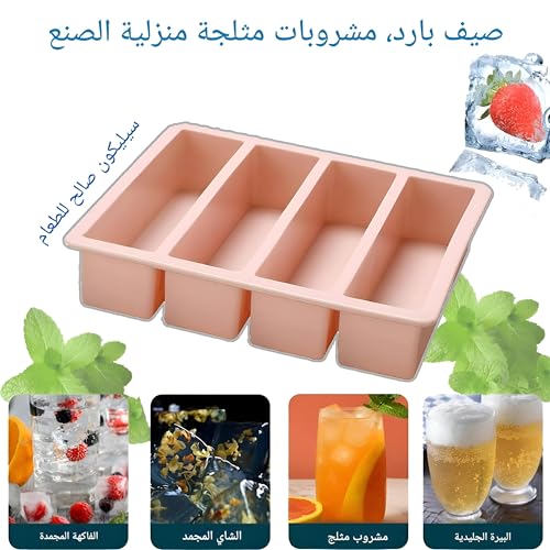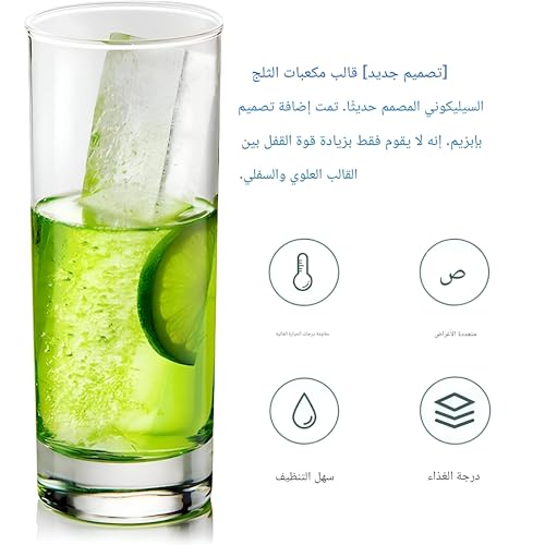 - يوفر قالب مكعبات الثلج السيليكون الطويل تصميمًا فريدًا يتيح لك صنع 4 مكعبات ثلج طويلة عملاقة، مثالي لتبريد المشروبات بسرعة وبشكل مميز. لا يعزز شكله المبتكر جمالية مشروباتك فحسب، بل يوفر أيضًا الوقت عند استضافة الضيوف أو الاستمتاع بمشروب منعش في يوم حار.