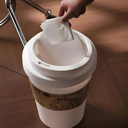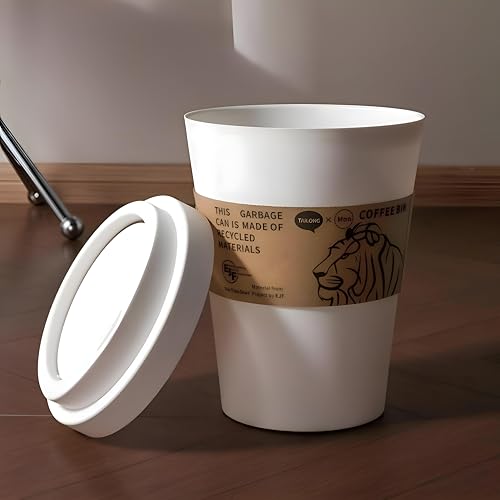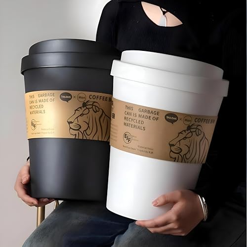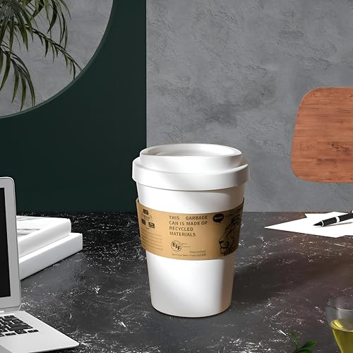 Generic - مج عملاق - سلة نفايات فريدة من نوعها على شكل كوب قهوة لتزيين الغرفة، يتميز بغطاء امن وحجم كبير لحمل المزيد من القمامة مع إضافة لمسة أنيقة الى اي مساحة بسهولة (ابيض)