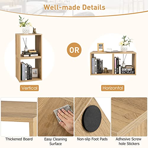 Giantex - منظم رف كتب من مكعبين، رفوف مفتوحة من طبقتين بطول 38 سم مع جهاز مضاد للانقلاب، منظم تخزين مكعب، حامل مشغل أسطوانات، رف كتب خشبي لغرفة المعيشة وغرفة النوم وغرفة الأطفال من جيانتيكس