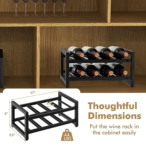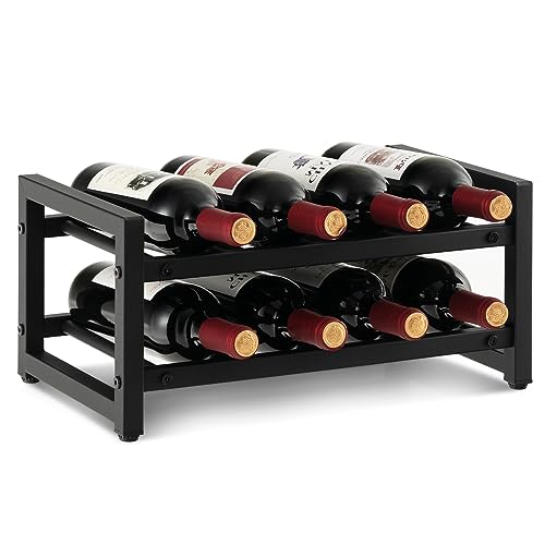 Giantex - جيانتيكس رف نبيذ معدني من طبقتين قائم بذاته باللون الاسود مكون من 8 زجاجات، حامل نبيذ قائم بذاته لسطح الطاولة والخزانة، حوامل زجاجات نبيذ صغيرة للمنضدة