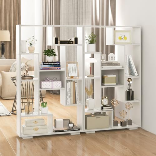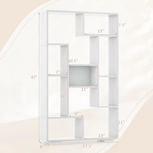 Giantex - جيانتيكس رف كتب 47 انش، خزانة كتب خشبية هندسية عصرية مع ارفف مفتوحة، مجموعات مضادة للانقلاب، رف كتب خشبي، منظم تخزين مكعب مفتوح لغرفة المعيشة