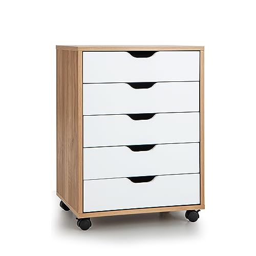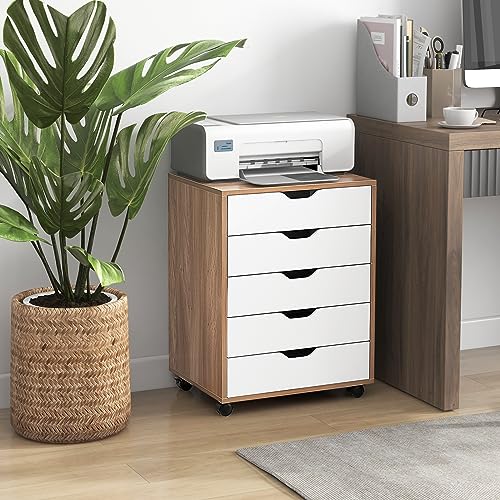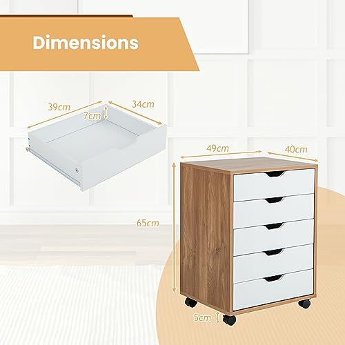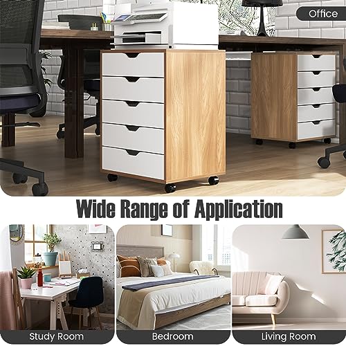 GIANTEX - جيانتيكس خزانة ملفات من 5 ادراج، قاعدة ملفات جانبية مع 4 عجلات، درج خشبي تحت المكتب، منظم خزانة تخزين، خزانة صغيرة ذات ادراج، خزائن ملفات متحركة (طبيعي)