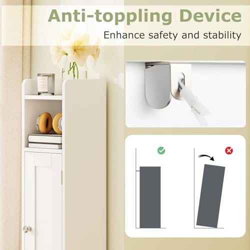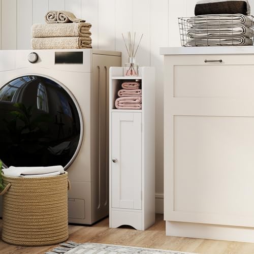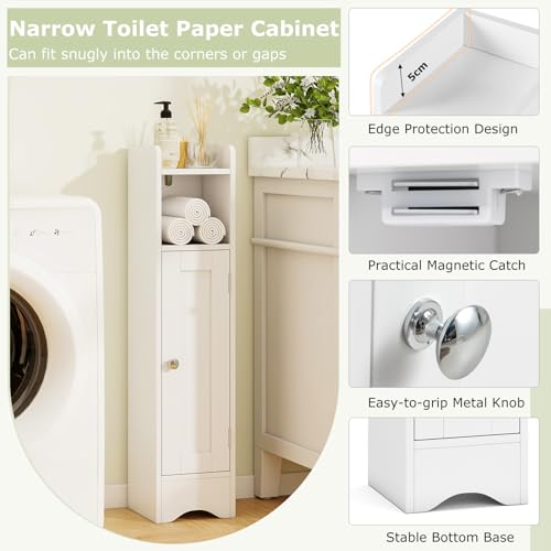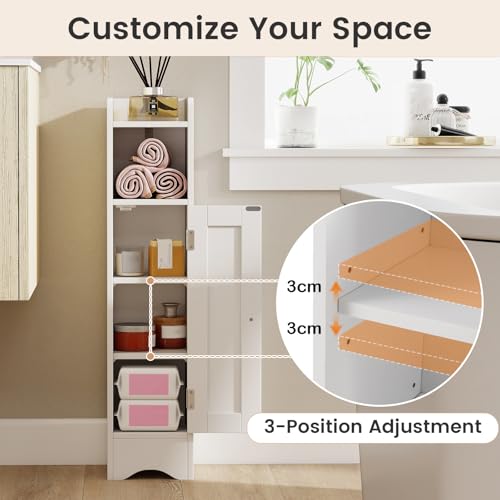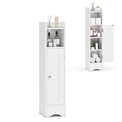 GIANTEX - جيانتيكس خزانة حمام، خزانة حمام ضيقة مع رف، ارفف قابلة للتعديل، خزانة تخزين للحمام وغرفة المعيشة، 19.5 × 18 × 80 سم (ابيض)
