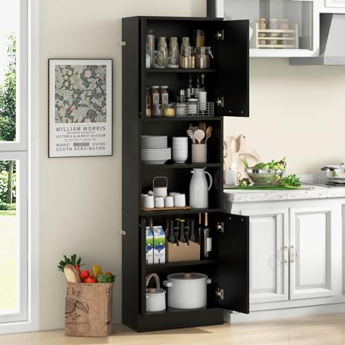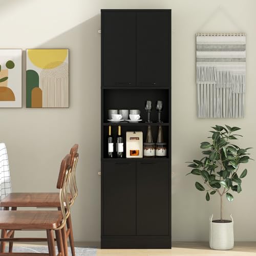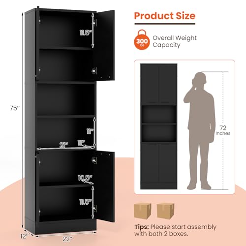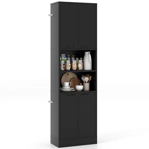 Giantex - دولاب مطبخ قائم بذاته مُزود بأبواب وأرفف ومفصلات أمان وأجهزة مقاومة للانقلاب، دولاب جانبي للتخزين لغرفة الطعام وغرفة المعيشة من جيانتيكس (لون أسود) بطول 190.5 سم