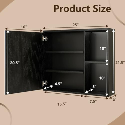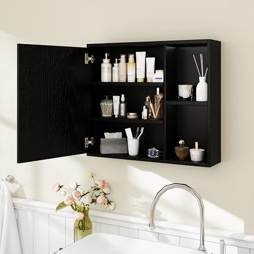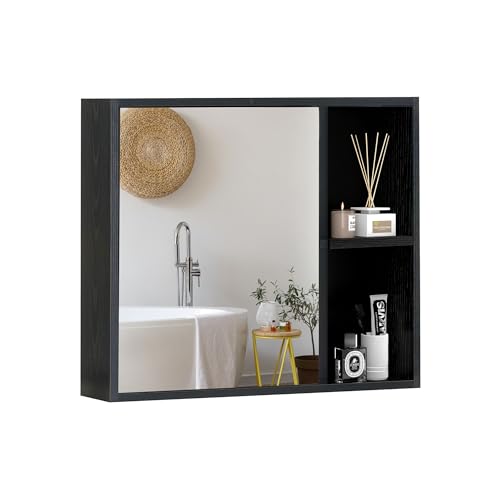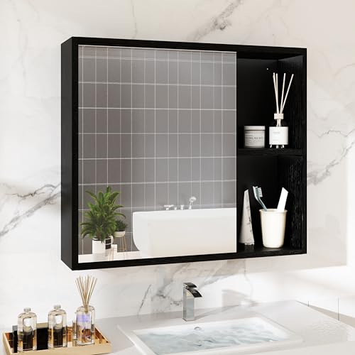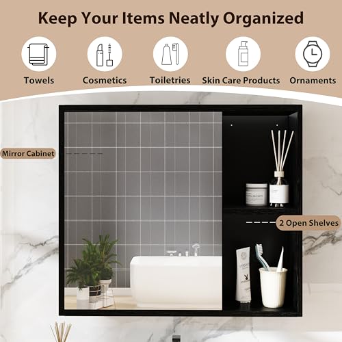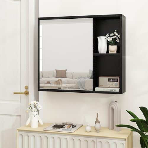 Giantex - دولاب أدوية لحائط الحمام مع باب بمراية ورفين قابلين للتعديل ورفين مفتوحين، دولاب زينة بمراية، دولاب تخزين فوق التواليت لغرفة الغسيل والمدخل من جاينتكس، أسود