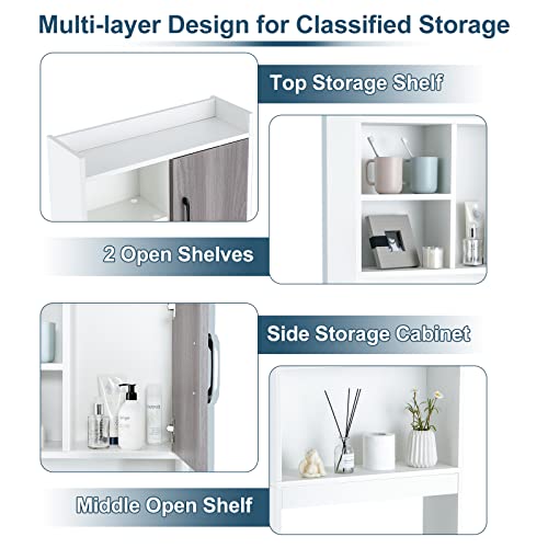 - تصميم صغير وحلية أنيقة: مصمم بلمسة نهائية بيضاء وباب دولاب رمادي ريفي، سيكون دولاب التخزين فوق المرحاض هذا إضافة لافتة للنظر لمنزلك. بالإضافة إلى ذلك، فإن المقبض المعدني الأسود لا يسهل عليك فتح الدولاب وإغلاقها فحسب، بل يضيف أيضًا إحساسًا بالأناقة.