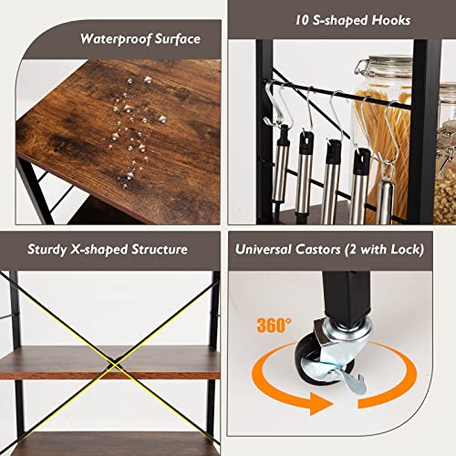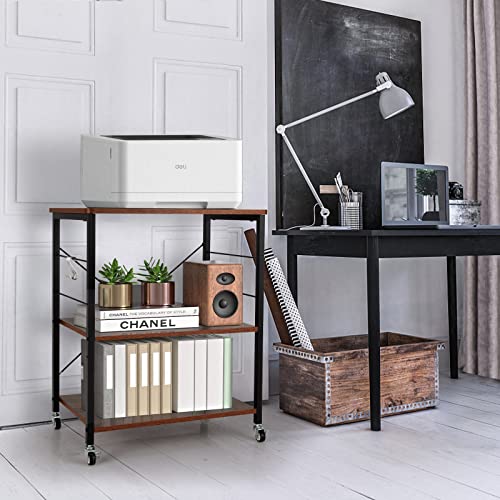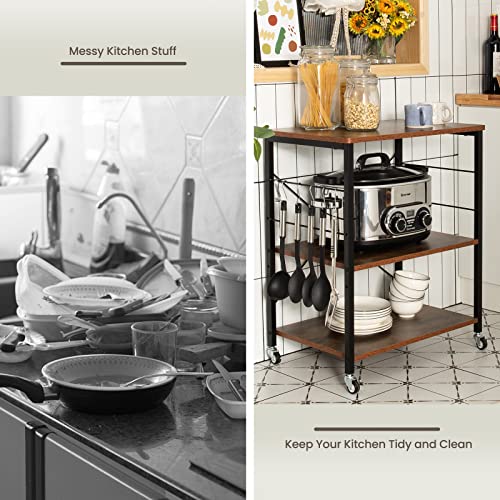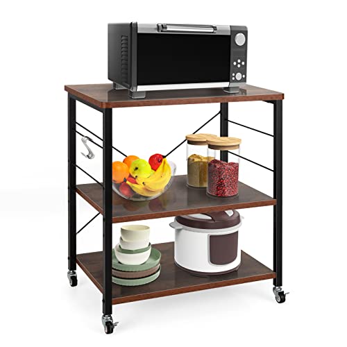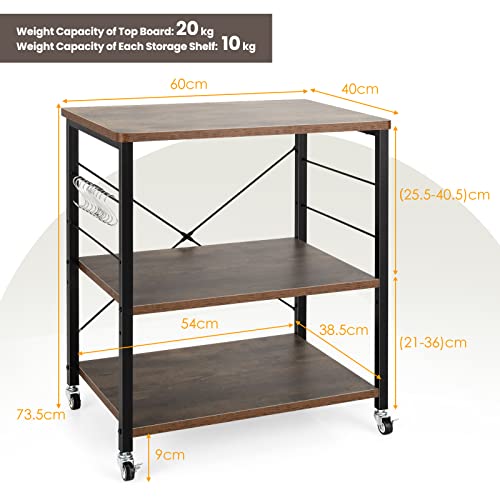 GIANTEX - عربة تقديم بعجلات للمطبخ، رف مطبخ 3 مستويات و10 خطافات، حامل طابعة بتصميم صناعي، عربة مطبخ من خشب وصلب، رف توابل قائم من جيانتيكس، 60 × 40 ×
