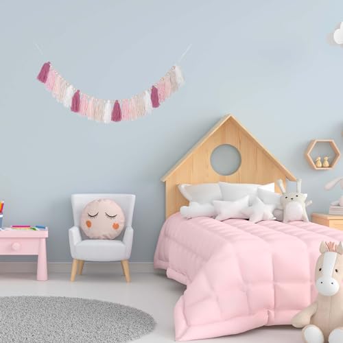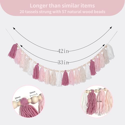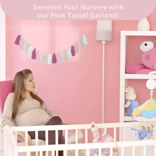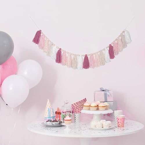 GIAUMA - ديكور شراشيب للحائط بوهيمي بألوان باستيل بنمط بريبي مثالية لغرف الأطفال وغرف النوم وسكن الطلاب وحفلات استقبال المواليد وأعياد الميلاد والفصول الدراسية والمكاتب وحفلات الزفاف من جياوما، لون وردي