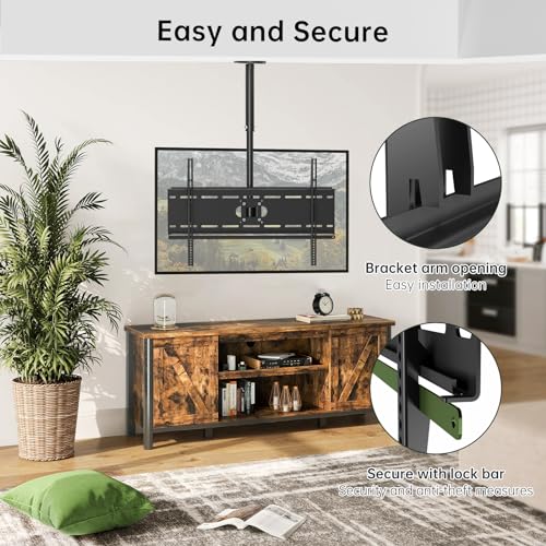 - حامل تلفزيون: حامل تلفزيون يثبت على الحائط للأسقف المستوية، ويمكن أيضًا استخدامه كحامل حائط للتلفزيون. وفر مساحة أكبر وحسن وظائف التلفزيون الخاص بك. تجعل ميزة التصميم متعدد الاستخدامات من الممكن استخدامه في الكافيهات والمسارح والمكاتب والمدارس والمستشفيات والصالات والفنادق ومصانع التصنيع وخطوط الإنتاج وغيرها.