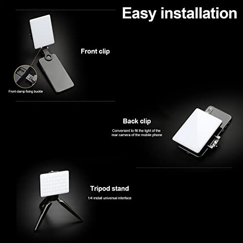 Gidenfly - 60 مصباح فيديو LED عالي الطاقة قابل لإعادة الشحن بمشبك من جيدنفلاي، مصباح LED محمول قابل للتعديل لملء الموبايل مع مشبك أمامي وخلفي، 3 أوضاع إضاءة، مصباح LED محمول لبث سيلفي مباشر