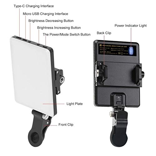 • ❤❤ هذا المصباح سهل التركيب بمعظم الهواتف المحمولة. متوافق مع جميع الهواتف الذكية وأجهزة التابلت واللاب توب وما إلى ذلك. هذه أداة احترافية لصنع مقاطع الفيديو في الوقت الفعلي مع الهواتف الذكية أو أجهزة الكمبيوتر. يمكن استخدامه لصور السيلفي والعروض المباشرة والتصوير الفني والأشياء لإضافة الضوء أو صور السيلفي لملء الضوء أو عدم كفاية الإضاءة. حجم الجيب وصغير للغاية، لا يشغل مساحة كبيرة في حقيبتك المدرسية.
