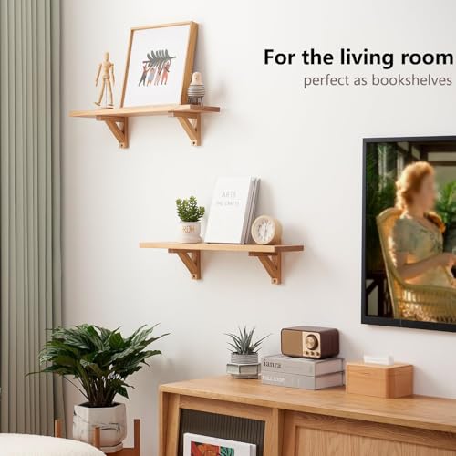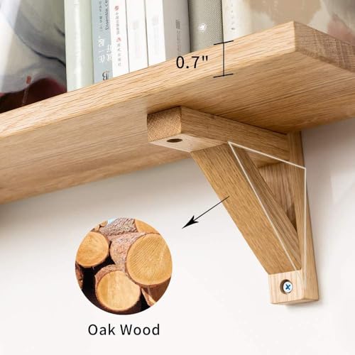 Gieanoo - رف عائم من جيانو، حائط خشب البلوط الصلب عرض ريفي، معلق مع دعامتين مثلثتين لغرفة النوم وغرفة المعيشة والمطبخ والمكتب والمزرعة، تخزين، متعدد الألوان
