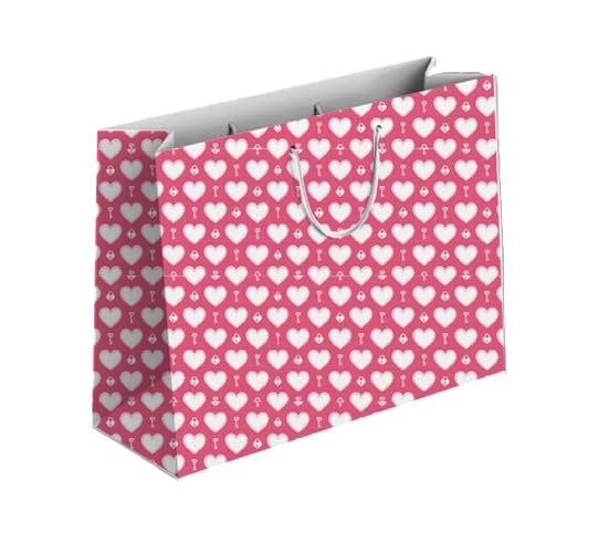 Generic - كيس هدايا بنقشة قلوب بلون وردي وأبيض، حجم كبير (مقاس 40 × 25 × 8 سم) مع مقابض حبل