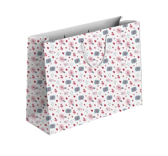 Generic - كيس هدايا بحجم كبير ونقشة قلب وتصميم باللونين الوردي والرمادي ومزود بمقابض، لون أبيض
