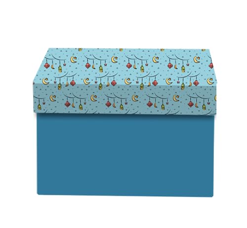 Generic - صندوق هدايا رمضان مع غطاء، لون أزرق، مقاس القمر والفانوس (25×18×9)