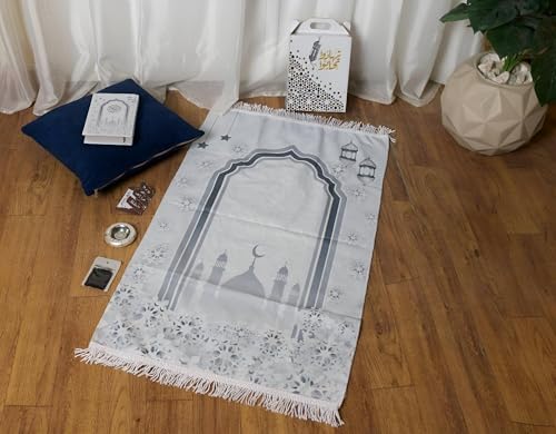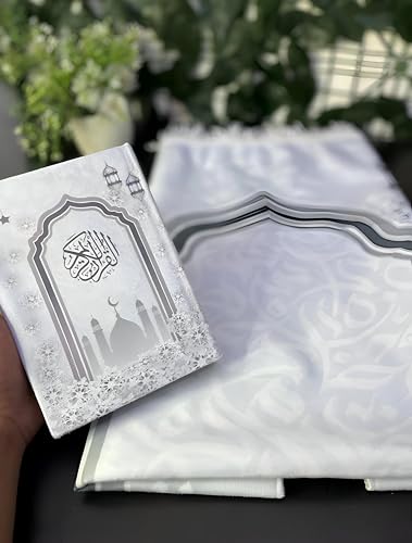 - يتضمن صندوق هدايا رمضان هذا سجادة صلاة فاخرة مصممة لتحويل كل صلاة إلى لحظة هادئة وهادئة، مما يعزز التواصل الروحي بفضل ملمسه الناعم عالي الجودة وتصميمه الأنيق.