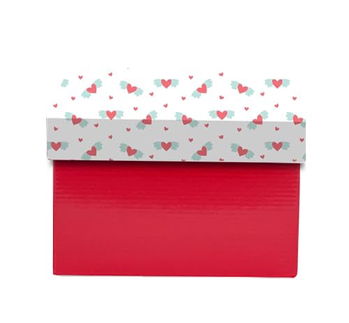 Generic - صندوق هدايا بتصميم قلوب، احمر وابيض، مقاس موضوع عيد الحب المزخرف (22.5 × 30 × 9)