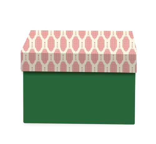 Generic - صندوق هدايا مع غطاء، قاعدة خضراء بنمط رمضان بينك، مقاس (24 × 32 × 11)