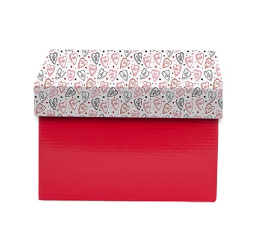 Generic - علبة هدايا بغطاء بنقشة عيد الحب، لون أحمر ووردي، مقاس (26.5×34×11 سم)