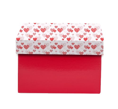 Generic - صندوق هدايا مع غطاء، نمط قلب احمر وابيض، مقاس موضوع عيد الحب (22.5 × 30 × 9)