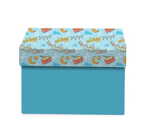 Generic - صندوق هدايا بنمط رمضان القمر السماوي بمقاس (25 × 18 × 9) - لون أزرق