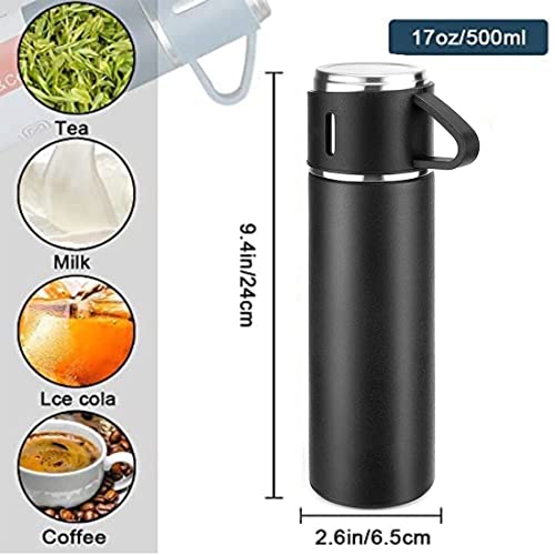 Spaceshoop - مجموعة هدايا قارورة مفرغة من الهواء جيفتانا سلة للعائلة الشركات زجاجة معزولة بتفريغ مزدوجة الجدار الستانلس ستيل مع كوب للقهوة والمشروبات الساخنة والباردة والماء 500 مل أسود