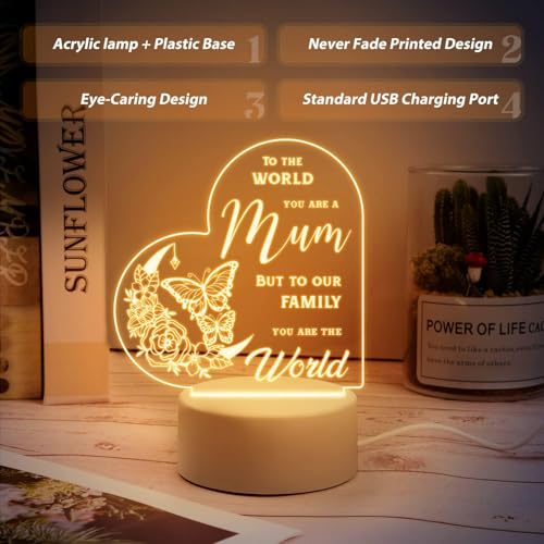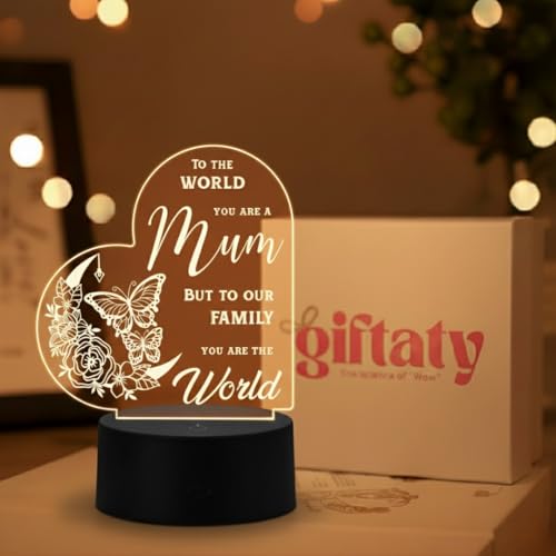 Giftaty - مصباح ليلي USB من الاكريليك من جيفتتي، هدايا للأمهات من الابنة والابن، عيد الأم، عيد الميلاد، الكريسماس، هدايا للأم، الزوجة، والأم الجديدة، صندوق هدايا
