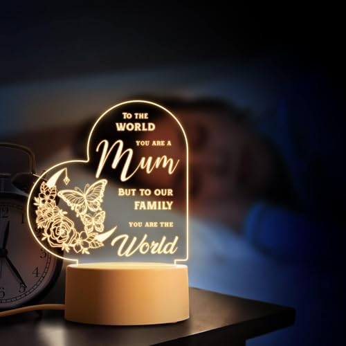 - 【هدايا عيد الأم للأم من الابنة والابن】 هذه الهدية للأم من الابنة والابن مكتوب عليها عبارة "To the world you are a mum, but to our family you are the world." تُعبر عن حب الأطفال لأمهم، مما يجعل المصباح الليلي هدية مثالية لأمك، ويظهر مدى حبك وتقديرك لها.