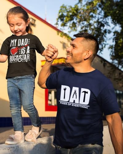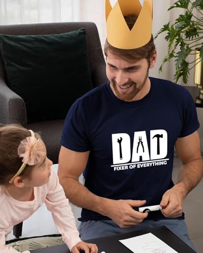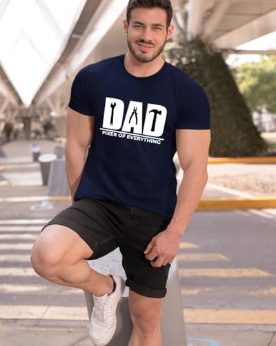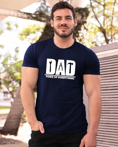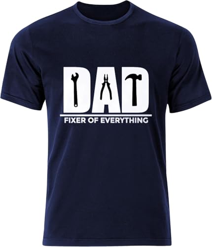 Generic - تي شيرت مطبوع عليه عبارة «Dad Fixer of Everything» من جيفتشوس، لون كحلي، تي شيرت برسومات مرحة لعيد الأب - المقاس: 2XL