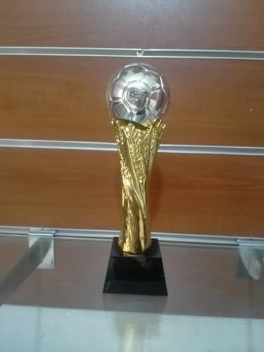 - تصميم مفصل: يتميز الكأس بقاعدة ذهبية مع نقوش معقدة وقاعدة سوداء وكرة قدم فضية في الأعلى، تجسد جوهر الرياضة.