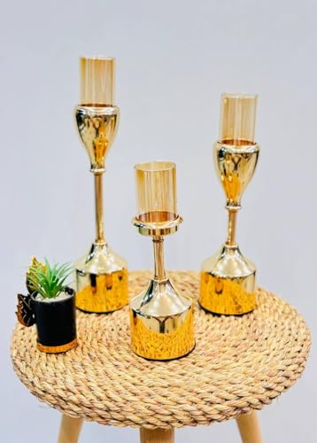Generic - مجموعة من 3 حوامل شموع ذهبية من جيفتشوس، حامل شموع انيق لديكور المنزل