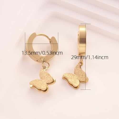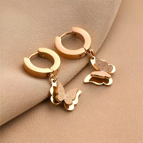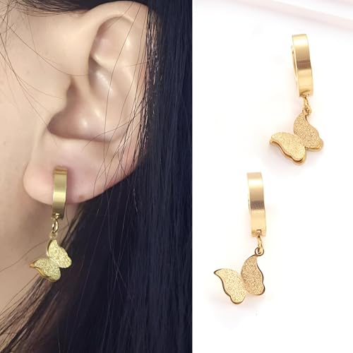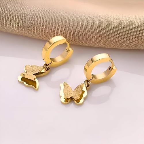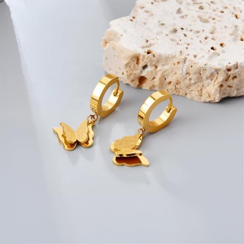 Generic - هدايا - اقراط جميلة على شكل فراشة من الستانلس ستيل مع طلاء ذهبي، لا تسبب الحساسية، قطعة انيقة من المجوهرات للمناسبات الخاصة للنساء وهدايا مدروسة