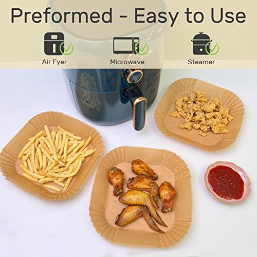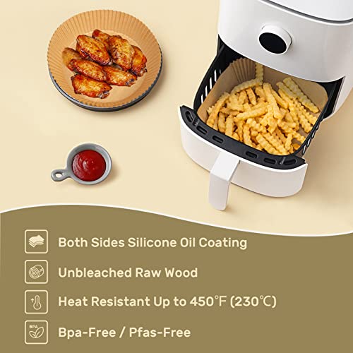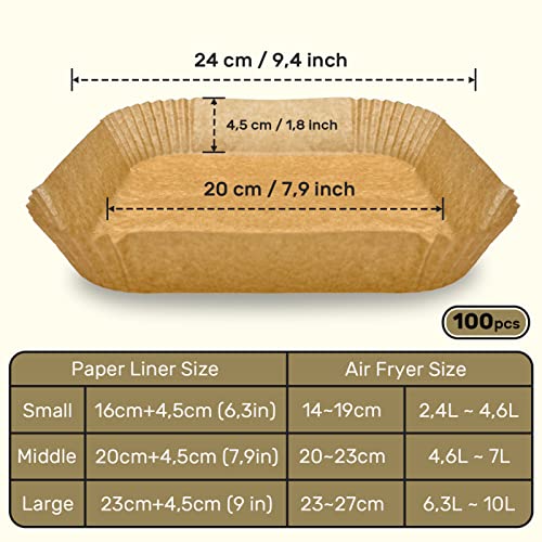 Gifttle - ورق الزبدة للمقلاة الهوائية الساخنة، عبوة من 100 قطعة، 20 سم + 4.5 سم، صواني غير لاصقة للاستعمال مرة واحدة، ورق زبدة للقلاية الهوائية الساخنة والبخار والميكروويف من جيفتل