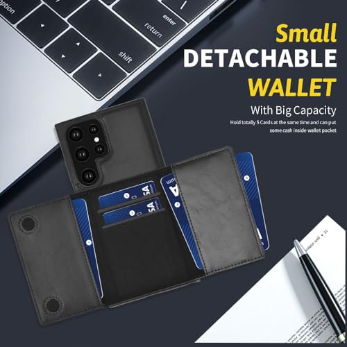 GIGA EG - حافظة حماية من الجلد لهاتف سامسونج اس 24 الترا بولوكا مع محفظة مغناطيسية قابلة للفصل 5 في 1 أسود